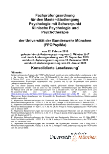 | PDF-Datei a) Konsolidierte Lesefassung der FPOPsy_Ma.pdf vom 12. Februar 2016, geändert durch Satzungen vom 2. Oktober 2017, vom 25. September 2019, vom 15. Dezember 2022 und vom 23. Januar 2025 | 21. Mär 2025 by Universität der Bundeswehr | |